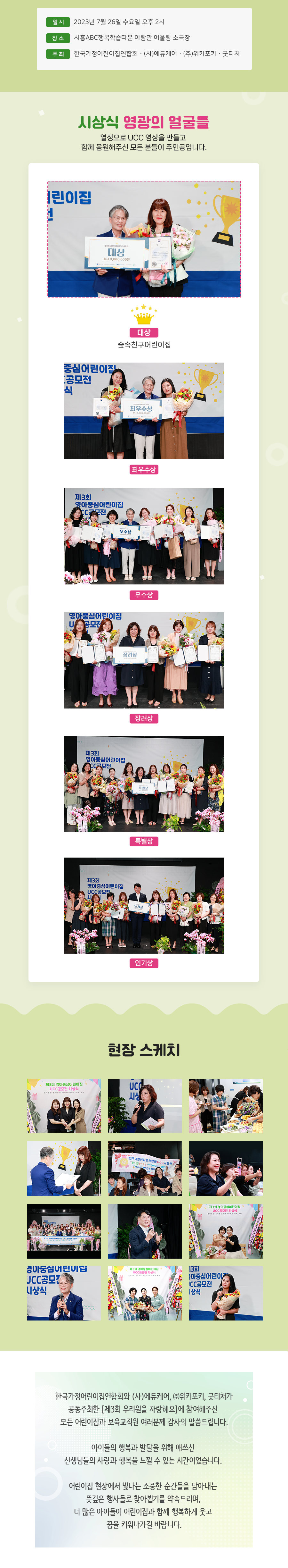 상금 10만원 + 한국가정어린이집연합회장상